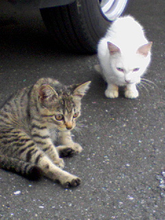 ちなみに今日は4匹いたョ。ちなみに黒にゃんこと少し茶の混じった黒にゃんこ、怪我してる白にゃんこ、縞模様の仔にゃんこ。