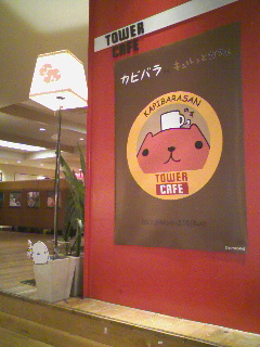 気付けば2月でびっくりな涙さんですぉ。 とりあえず、今日は特に何もなかったので、昨日と一昨日のことを。 まず昨日! 昨日は締め切りの終わったソルナさんと、久しぶりにおでかけしてきました♪ とりあえずは、パパママの都合でしてあげれなかった節分を、サンとルナにさせてあげました。 バイト先で鬼のお面付きの豆を買ってあげたのですが、小さいお面は予想通りサンにぴったり♪ かなりかわゆかったのですよvV その後はメインイベントだった、期間限定でオープンしている“カピバラさん キュルっとカフェ”に、丁度場所が恵比寿ということもあって行って来ました♪ で。 行ってみるとびっくり! オープン二日目ということもあってか、お客さんいぱーい! 多分喋ったりしていたからそこまで長くも感じなかったけれど、一時間は並んでいたんじゃないかなぁと。 で、カフェの入り口。 もう、中から外までかっぴーずくしでした(笑)。 中に入ると、席にはおっきいカピバラさんが待っていてくれて抱きしめてほんわかvV で、ご飯系が2品とデザートが2品、あとココアのオリジナルメニューがあったのですが。 これが、私の注文した“カピバラさんのもっしゃもっしゃそぼろごはん”。 うん、サラダたっぷりで、口の中でしゃりしゃり言っているのが分かるのに、もっしゃもっしゃ食べてる気分になりましたよ(笑)。 メインのそぼろごはんもとてもおいしかったのです♪ で、こっちがソルナさんが注文した“カピバラさんのわくわくランチ”。 ハンバーグの上の目玉焼きが半熟ぷるぷるで、とってもおいしそうだったのですvV そして、すみっこにこっそりいるなまけものくんがかわゆでした(笑)。 ソルナさんにスプーンでぐさっとされた時は、ちょーっと可哀想でしたけどねー; 席的にもそこまで周りから見える場所でもなく、それ以前にそこらじゅうにかっぴーやほわいとさんがいたので、せっかくだからと連れて行ってあげたルナとサンもご機嫌でした♪ そのあとはいつもの(?)池袋へ移動~♪ ゲーセン行ったりお茶でお喋りしたり。 久々に楽しく過ごせましたですよ。 …とりあえず、一昨日のことはこのくらい。 昨日のことはジャンルも変わるので、一度切りますですー。