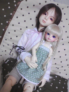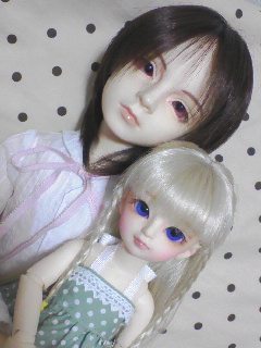 なんだかまともな日記を更新するのが凄く久々な気がする涙さんですー。 ん、更新はしたかったんだけどね。 書くことが思いつかなかったり、先に眠気がきちゃったり、裏ブログを更新しまくってみたり。 とりあえず、ダメダメな感じだったのですぉ; 今日もやっぱりダメダメですけどね; うにゃ、午後からソルナさんと原稿書いていたのだけれど、自分自身で“これ以上落ちるとやばい”っていうところまでいっちゃったので、いつもなら22時くらいまで書いているのを20時半くらいには切り上げさせてもらって; そのあと少し甘えさせて貰ったりしたおかげで、なんとか発狂しない程度には落ち着きましたけどね; 今日はソルナさんと待ち合わせする前に新宿アルタにあるお花屋さんに行ってきました。 ん、なんか“こけだま”?とかいうので、針金でうさぎとかねことかにしてあるかわゆいのがあってね。 “育てるのは簡単”て書いてあるけれど、簡単な割には面倒くさそうで(←)。 けど、可愛くて欲しかったので、母方の祖母に、特に何かの日というわけではないけれど、プレゼントってことで買っちゃいました♪ それがこの子。 ほかにも猫とか犬とかいろいろ種類があって可愛かったんだけど、やっぱり私的にはなんかうさぎなので、一番可愛い顔したうさぎさん選びました♪ 祖母、お花関係は大好きだからね。 冬に帰省した時にどうなっているか楽しみですぉ♪ うにゃ。 ついさっきまでは優寂と恋呼と自分の、明日のドルショの準備をしてました。 恋呼のアイの位置を簡単に直したり髪を結ってあげたり、優寂の髪にスプレーしてあげたり。 ちなみに明日の服装は、私はアンジェリックプリティーの黒×白のワンピース。 優寂と恋呼は写真の通り。 オーナーがロリータでドールはカジュアルっていうのはお気になさらず(笑)! や、ゴスとかパンクとかロリータとかね。 させたい気はするけれど、やっぱりこの子たちはカジュアルが一番な気がするのですぉ。 だから、恋呼にワンピースとか買うとしても、ドレスみたいのじゃなくて、ピンクハウスみたいのが理想♪ てことで(?)、明日のドルショで黒×白のロリータで上の服装のドール二人を抱いている痛い子がいたら私です(笑)。 それじゃあ、明日寝坊しないように、さっさか寝ようと思いますです。 おやすみなさい☆