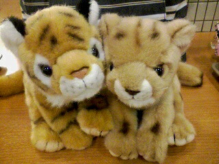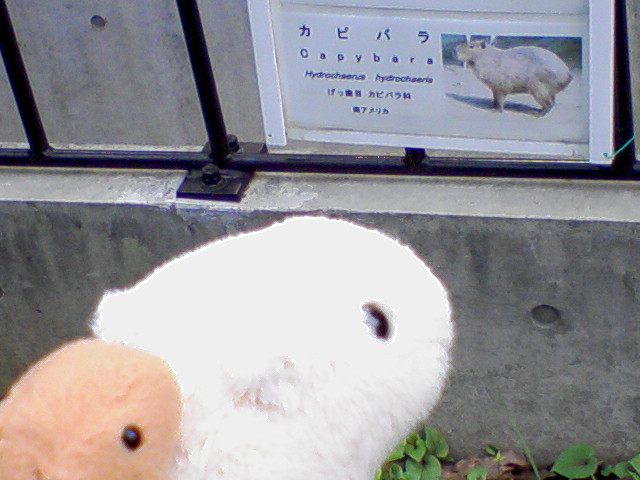 一日遅くなっちゃいましたが、昨日はソルナさんと一緒に上野動物園に行って来ましたですーvV うさぎさんの抱っこは、受付時間が終了しちゃってて出来なかったけれど、かっぴー、てかカピバラさんはしっかり見てきましたよ(笑)♪ いろんな動物がいたけど、かっぴーのところに一番長くいました。 そして一番いっぱい写メ撮りました。 もうね、仔かぴが可愛いのvV 一人でかなり素早く走り回ってて、けど、お母さんやお父さんが動くとくっついていって。 仲良し親子に癒されましたよー。 てことで、カピバラ親子の写真♪ そして、本物のかっぴーとほわいとさん達の夢のコラボレーション(笑)。 最後、カピバラの紹介パネルを見るほわいとさんとかっぴー(笑)。 うさぎさんは、抱っこはできなかったけれど、黒うさぎが二羽寄り添っててかわゆでしたvV あとあと、うさぎさんとの触れ合いは無理だったけれど、ヤギさんとは触れ合えましたよ♪ ん、“ショコラ”ってネームプレート付けたヤギさんに、お洋服食べられそうになりましたです(笑); 他にもいろんな動物がいて可愛かったー♪ 本当、凄く楽しかったです。 そして、おみやげ屋さんで買って来た新しい家族vV 左がソルナさんの買った、とらのあかちゃんの“サン”。 右が私が買った、らいおんのあかちゃんの“ルナ”です。 サンはやんちゃでちょっとおバカな男の子で、ルナは大人しいお姉さんみたいなしっかりものさんなイメージvV とにかく、とってもかわゆいのですよー♪ ん、そんな感じのレポになっていない(ぇ)動物園レポでした。 ちなみに今日は普段と変わらずマックでした(笑)。 そして普段と変わらず遅れてくるソルにゃんこでした(にっこり)。 ではでは今日はこの辺で。 おやすみなさいませー。