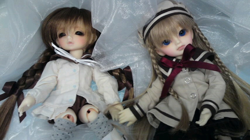 眠いなぁとか思いつつだれたれちぅの涙さんです。 昨日はものっすごく充実した一日を過ごせました♪ とりあえず、最初は妃沙さんと待ち合わせして池袋へ。 池袋のクローゼットチャイルドに連れてってもらいましたぉvV あ、↑はドール関係やロリータ、パンクのお洋服V系の音源の中古品を売ってるお店にゃのですぉ。 とりあえず、ドール関係のコーナーへれっつごぅ!って感じで、見に行ったんですが、かわゆい子やら気になる子やらがいっぱいでうきゃーとなってました(笑)。 で、そこで運命的な品を発見! ウィッグとかお洋服もいろいろ売っていたりするわけなのですが。 ウィッグを見てたらねー、SDサイズのショートシャギーがあったのですよ。 それも、ダークブラウン! ダークブラウンのショートシャギーって、優寂のデフォにしているウィッグと同じなんです。 で、フルチョ限定の色で、この先ウィッグが痛んだりしても、同じウィッグを準備してあげることが出来ないからどうしようってずっと思っていたの。 それが1500円であったんですよ! もう感動的すぎて…(嬉)vV うちの子のウィッグ、恋呼以外普通に販売されてないから、どうしようって感じだったんですよね。 愛哀のもとりあえず廃盤のウィッグだから、まだ残っていたのを予備に一つ買ってある常態で。 とりあえず、優寂にも予備のウィッグが出来て一安心でした。 ドール関係を一通り見た後はお洋服のコーナーへ。 もうね、どのお洋服も可愛くて、お値段も可愛くて、きゅんきゅんしまくってました♪ 原宿のクロチャはそれなりに行ってはいたけれど、プトマヨのお洋服っておいてなくってね。 けど、池袋の見てたら、プトマヨのお洋服も結構あったの! とりあえず、大人しく我慢して自分のお洋服は買わなかったけれど、そのうち手を出したいなって思います(←)。 そのあとはまったりお喋りしつつお昼食べて、そこでバイバイしました。 もの凄く楽しかったですぉ♪ で、お次に遊んだのはユリアちゃん♪ この間一緒に原宿デートしようね!って約束したのを早速実行しちゃいました(笑)。 私のお洋服を貸して、二人でプトマヨコーデで遊びましたvV とりあえず、ユリアちゃんは初☆原宿だったので、前に行ってみたいって話していた、天使のすみか→ラフォーレ→竹下って感じでおでかけ♪ ラフォーレでは可愛いお洋服にきゅんきゅんしまくりでした。 アリスアンドパイレーツでは日傘を買おうか悩みまくった結果、気になっていた日傘を予約♪ 6月末までに入ってくるらしいので、暫くは雨傘か、日傘+折り畳み傘で頑張ります♪ そしてプリティーの方へ行くと、偶然らる~てさんとばったり! 意外なところでの再開でびっくりでしたよー。 で、本命(多分)!プトマヨvV お洋服を見ていたら、前から仲良くして頂いている店員さんの一人の方に「雨音さんこんにちはー」って声かけてもらって凄く嬉しかったですぉvV ん、いつも声かけてくださるけれど、名前つきは初だった! ついでに春前くらいから入られたっぽい新しい店員さんにもなんだか覚えられたっぽく、わーいって感じでした♪ ユリアちゃんは水色系のスカートやセーラーにきゅんきゅんしてましたですぉvV それからスイマーを覗いてから竹下方面へ。 土曜日だから当たり前とはいえ、人の量がもの凄かったです; 竹下に行ってからはクロチャやボディーラインを覗いて、更にきゅんきゅん♪ ボディーラインは普通にかなり可愛いロリ服がお値段も可愛くって、二人でびっくりしてました。 その後はユリアちゃんが疲れてきた感じだったので、前から気になっていたカフェに入ってお喋りしながらまったり。 ケーキ系も美味しそうと思いつつ白玉とストロベリー系のスイーツを選んだことにちょっと複雑に感じたり感じなかったりしたのは秘密ですぉ(←)。 白玉、最近良く食べてるからね(ぽそり)。 いっぱいお喋りしたあとはまた遊ぼうねって約束して、お別れ。 陸さん引っ張ってすみかへ! 梨恋ちゃんと恋呼、二人ともセーラーで合わせて写真を撮りまくってきました♪ 撮影スペースはジューンブライドをイメージした感じになっていたのですが、ふわふわのシフォン系の生地がたっぷりかけてあるところでは、もぐらせて遊ばせました(笑)。 ん、幼っ子だからできることですね☆ そんな二人の写真♪ たっぷり写真を撮ってからは竹下のマックへ移動して食事しつつずっとお喋りしました。 陸さんが、ちょっといろいろあって落ち込んでいたんですが、少しでも元気になるお手伝いが出来て良かったです。 うん、私なんかでも役に立てたっぽい(←)! それからは満員電車であうぅってなりつつ帰宅して、帰ってからは昨日約束していたのでソルナさんと電話♪ もう、一日でどれだけ遊んでんだって感じですね☆ うん、気にしません。 楽しかったからそれで良し! さてはて。 今日は午後からバイトです、よ。 来週、バイトをどうにか休んでプトマヨのティーパーティーにいけないかと悩み