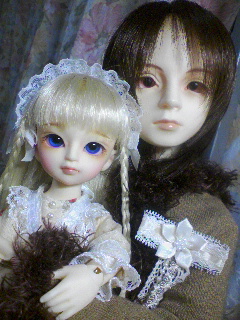 タイトルはガゼットの“REGRET”より。 ん、昨日アップするつもりだったんだけどね; 気付いたら寝ちゃってて朝でしたっていう…(苦笑); とりあえず、うん。 なんていうか、ね。 もうグルーなんて触りたくないなと思いました(ぇ)。 えと、初めからアイを付けられて販売されている子達は、グルーっていうボンドみたいのでアイを固定されているのだけれど。 恋呼も例に漏れず、グルーで止められてたのよ。 で、溶液使って、頑張ってはずそうとしてたんだけれど、想像以上に硬くてね; 一昨日の夜と昨日帰ってきてから。合わせて2時間以上かけてやっととれました;; ん、外そうとしながらメイクに傷付かないか凄い怖かった;;; けどね、新しく買ってあげたダークヴァイオレットのグラスアイを付けてあげたら、結構似合ってくれたのvV 似合わなかったら、優寂とサイズ違うからお蔵入りして新しいの買うしかなくなるし、似合ってくれて本当良かったよ; ちなみに、ちょっと上目遣いっぽい感じに付けてみました(笑)♪ 以前に増してかわゆくなりましたですよvV とりあえず今日はこの辺で。 写真はアイを交換した恋呼と優寂。 ではでは、おやすみなさい。