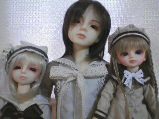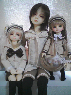 はい。 お久しぶりです。 なんかもの凄く久々に日記書く気がします; や、書きたかったんだよ。 書きたかったけど、まとめるの面倒だったんだよ(←)。 まぁうん、とりあえず、簡単にここ数日の出来事を振り返ってみようかと。 5月1日。 手帳に何も書かれていません。 いこーる、何もせずにだれていたと思われます。 5月2日。 一ヶ月ぶりにソルナさんに会いました。 1時間半くらい遅刻されたけどね(泣)! 原宿に行って、ラフォーレでやっているドール展を見に行ってきましたぉ♪ ものっすごい綺麗でしたvV そして凄くちっちゃいドールが13000円で販売されていて、衝動でお迎えしそうになりました(←)。 こらえましたけどね; その後はプトマヨへ。 今度辞められるS木さんにプレゼント持って行ってきたよ♪ で、気になっていたワンピース買って来ましたvV 私にしては珍しく黒にグリーンの水玉もよう。 ぴんくじゃないよ! 帰りにはS木さんに軽く抱きつかせてもらって帰ってきました(←)。 5月3日。 おせんべい屋さんのバイトでした。 次の日が縁日なこともあって人が凄かったぉ。 5月4日。 うわーい、人の量が有り得ない! いこーる、巣鴨の縁日なおせんべい屋さんのバイトです。 4時間だけど、もの凄い忙しかった。 本部の社員さんは苦手だと思った。以上。 5月5日。 待ちに待ったドルパ! 久しぶりに6時起きで、7時半に家出て、ビッグサイト行きました。 お供は愛哀と恋呼。 恋呼に靴下とワンピース。 愛哀にカットソーとハーフパンツ、靴下。 3人にそれぞれブラウン系のセーラー服(ディーラーさまは違うところ)を買ってあげました。 それがこれ♪ ごめんなさい、親ばか上等で言わせてもらう。 この子達可愛すぎ! 兄弟ではないけれど、三人揃ってセーラー着てたら、本当に兄弟みたい! 暫くはこの子達見て生きていけます(←)。 ついでに今回は、お友達にも会えて、お友達も増えました♪ とりあえず、入ってすぐにチェスさんに出会いまして。 それから日和さんのブースに遊びに行ってお喋りして。 その後、チェスさんとらる~てさん、妃沙さんに合流させてもらって写真撮影! 妃沙さんとお友達になりました! 家が二駅しか離れてなくてびっくりだったぉ♪ それからひろさんと初会いしまして。 よしださん、つきかげさん、み~みさんとお写真ご一緒させて頂きましたvV ビンゴは散々でした。 二つしか開かないとか(爆)。 精天使欲しいんだけどにゃあ。。。 その後はチェスさんとらる~てさん、妃沙さんと一緒にサイゼでご飯♪ いろいろお喋りして本当に楽しかったです♪ 帰りも地元駅まで妃沙さんと一緒で、最後まで誰かとお喋りしながら帰るなんてなんだか新鮮でした。 5月6日。 本日ですね。 あんみつ屋さんのバイトでした。 暇で疲れました; どうでも良いけれど、今日行ってシフト確認したら驚愕の事実が。 6日→あんみつ屋さん。 7日→あんみつ屋さん。 8日→おせんべい屋さん。 9日→あんみつ屋さん。 10日→あんみつ屋さん。 まさかの5連勤! びっくりでしたよ。 まぁ、金銭的にきびしくなりつつあるから良いけどね; とりあえず、今日決まったこと含め今後の予定が、 来週→あざみちゃん、姫、(ナツにいにも?)と遊ぶ。 江里さんと遊ぶ。 6月→ソルにゃの誕生日。 多分恐竜展行くはず。 7月→ドレミ團のイベントライヴ。團員の集い参戦。 出費的にはガゼットのアルバム発売。 江里さんのおうちにお泊まりに行くかも。 8月→ドレミ團ワンマンライヴ。 9月→ガゼットファイナル。 …書いてみて今更だけど、大丈夫かな;;; 来年関東にいれるかが心配になってきたよ(ガタブル)。 とりあえずバイト頑張るけどね; ものっすごく簡略して書いちゃったけれど、とりあえずそんな感じのここ数日&今後。 ドルパについてはもっと書きたかったにゃあ; けど、長く書いたところで、途中でめんどくさくなる気がしたんだ;;; とにかく、ドルパでご一緒させて頂いた皆様、遊んでいただき本当にありがとうございました! 又、ご一緒に撮らせて頂いたMSD16番・愛哀(いとかな)と幼SDたんぽぽ・恋呼(こよび)の写真はご自由に日記等に載せて頂いて大丈夫です。 それでは今日はこの辺で。 おやすみなさい。