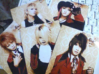 タイトルはドレミ團の「メモリィズ~悠遠の風に憧れて~」より。 そんなわけで?終わりました。 ドレミ團、握手会。 では、簡単レポいきますー。 とりあえず、リアルタイムで更新しちゃっていた通り、6時ごろからライカの近くの公園で並び始めました。 ロリやパンクのバンギャさんもいるけれど、今回は“浴衣祭”っていうのもあったから浴衣や甚平姿のバンギャさんがいっぱいでしたですー。 うん、どっちにしても素敵なバンギャさんがいっぱいで、凄いおどおどしてたけれどね(笑)。 それから、私の整理券は157番だったわけですが。 結局外で2時間、お店の中で30分くらい並んだかな。 でね、お店での並ぶ位置が最高だったの! 6人ずつ横に並んでいたんだけれど、私は丁度左端に並びまして。 横に顔を出すと、マコトちゃんと零華さんがすごく見えやすかったのですょョvV とりあえず、ずっとマコトちゃんだけ見つめてました(はぁと)vV いや、零華さんやKENさんも見てはいたけれどさ。 ほぼマコトちゃんだったね(笑)。 で、ずっと見つめていたら、一度マコトちゃんと目が合った気がしてなりません(ぇ)。 うん、きっと合ったよ、合ったんだよ。 痛い子上等でそう思い込みます(をい)vV それから途中で笑えたのが、マコトちゃんがライカの店員さんと何か話しているナァと思ったら。 マコトちゃんが立って、こっちの方へ歩いてきながら、 「トイレ行って来まーす!」 と素敵に宣言して一度退出(笑)。 ちなみに一緒にお手洗いらしい龍さんがなんか恥ずかしそうで可愛かったです(笑)。 ん、そのあとは「ただいまー」って戻ってきました(笑)。 やっぱりマコトちゃんは可愛いです。 そして、何より横を二度もマコトちゃんが通っていったのが感動だった。 それから自分の番までは「マコトちゃんマコトちゃんvV」て呟きながら(痛)、マコトちゃん見つめて順番待ってました。 で、私の番になりまして。 店員のお姉さんにカメラ渡して、写真を撮るためにメンバーの傍へ。 後ろには左から零華さん、KENさん、シンジくんが座ってて、前は左にマコトちゃん、右に龍さんで、その間に座って写真を撮りました。 先に撮っていた子がマコトちゃんと龍さんに手を繋ぎながら撮ってもらっていて、それやってもらおうかと思ったんだけれど、そんなこと頼む(心の)余裕はなかった(笑); 写真撮ってからは、龍さんから反時計回りで握手してもらいました。 なんかもう緊張しまくって、とりあえず、声震わせながら「ありがとうございます」だけ言ってた。 龍さんはなんか凄い力強い感じで握手してくれました。 そして最後がマコトちゃんvV やっぱり「ありがとうございます」言って、そのあと。 なんかもう勢いで、 「マコトちゃん、好きです!」 とか言って来ました。 ん、何告白しちゃってんだろうね(笑)。 良いの、マコトちゃん「ありがとう」って言ってくれたから(はぁと)。 そんな感じで、もうかなり泣きそうになりながら握手会終了しましたです。 最後にお店の前でドレミのあー写1セットとポートレートを1セット購入。 合わせて2千円は微妙に痛かったけれどね; 良いの、幸せだったから(ぇ)。 帰りはドレミの曲聴きながら、はにゃんとなりつつ帰りましたです。 ん、ワカバの時は結局インストもライヴも流れちゃったから、今回ほんの少しだけれど握手したり出来て、本当幸せでした。 レポはそんな感じ? 画像は買ってきたアー写。 記念撮影のは私が痛いから載せない(笑); ちなみに左上がシンジくんで右上が零華さん。左下が龍さん、真ん中がKENさんで、右下がマコトちゃんvV 少し貯めちゃってるコメントレスはまた後ほど。 ではまたー。