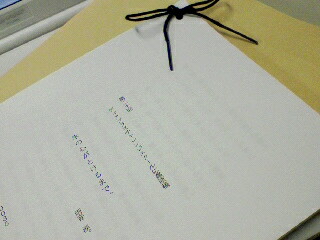 夜中、気付いたら2時間くらい寝ちゃっててー、それ以外は原稿の最後の追い込みしてー。 その間、ドリンク2本に助けられました。 なんかね、昨日飲んだのとかもビン置きっぱだったから、机に並んでるドリンクのビンに切なさを感じたよ。 でー。 とりあえず、原稿印刷完了? なんとか失敗もせずに一発で印刷できたー。 これからメイクしてー、鞄準備してー、学校へごー。 そしたら次、斉藤先生にあらすじのデータ渡してー、石河先生に送ってもらってー。 石河先生に時間があれば電話で指導してもらってー。 それ直して完成したら郵便局へだっしゅー。 駄目だ、すごいへろへろー。 なんかね、キーボード打つのもしんどいのですよ。 パソ持って、学校までたどり着けるかしら。 奇跡的に電車で座れたりなんかしたら、確実に寝るね。 新木場まで行っちゃうね。 うあー、それはやばい。 けど、バスは寝る。絶対寝る。 みゅー。 うにゃー。 あーだめだ、完璧壊れてるー。 さてと、準備しまーす。 それではまた。 おやすみなさーい。うあ、違った。